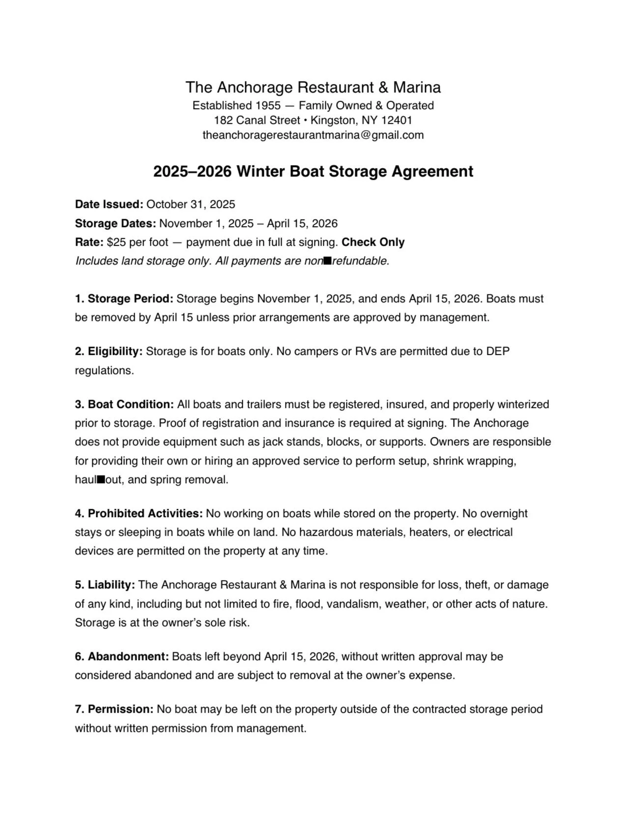 For questions email us at theanchoragerestaurantmarina@gmail.com
