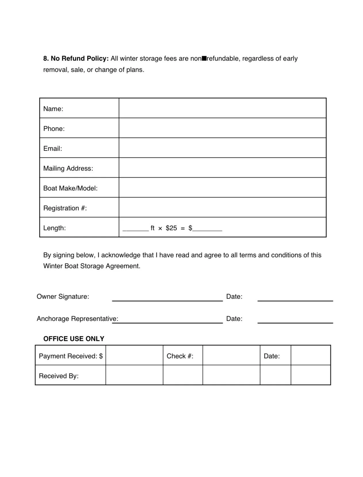 Storage runs November 1, 2025 through April 15, 2026 at $25 per foot (check only).